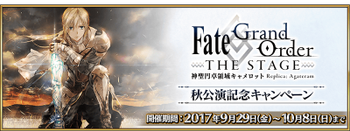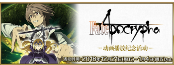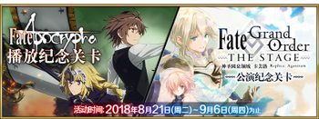 TV动画「Fate/Apocrypha」播放&舞台剧「FGO THE STAGE 神圣圆桌领域」公演纪念关卡 |