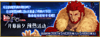 | 类型 | 国服已结束活动 | 开始时间 ~ 结束时间 | 可获得从者 (有红色外发光的从者共享获得次数) |