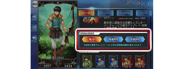 追加了可设定各从者宝具演出速度的功能。