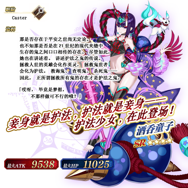 【活动限定从者】 ★4(SR)「酒吞童子(Caster)」 |