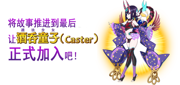 在本次活动中,推进主线剧情,便可让活动限定从者「★4(SR)酒吞童子(Caster)」限时加入。