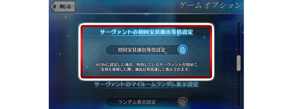 追加了只有在从者初次使用宝具时,宝具演出速度显示为等倍速的功能。