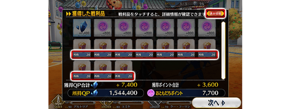 在战斗结束后的「获得战利品」「活动点数奖励一览」界面中,进行了可以确认获得道具的所持数量的UI改善。