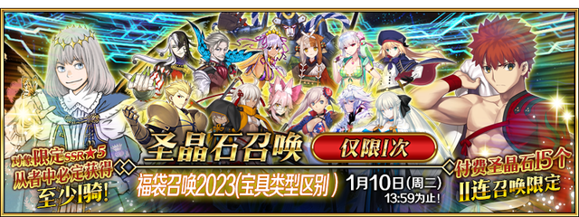 ※「福袋召唤2022(宝具类型区分)」中获得的★5(SSR)从者仅含2021年12月前登场的限定从者,不包含剧情召唤中可召唤的★5(SSR)从者。 |