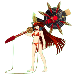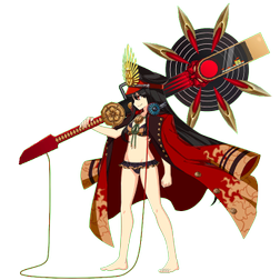 ロックな水着を着たノッブ。いつも以上にはしゃぎすぎている。すみやかに霊基再臨してクソダサいTシャツを脱がせてあげたい。