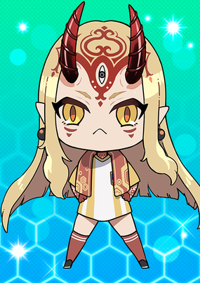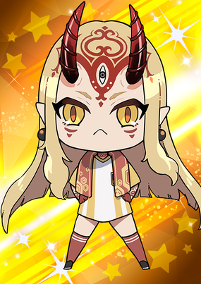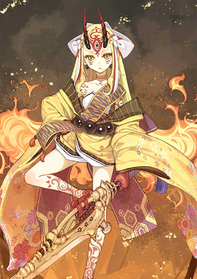茨木童子(Berserker)装备,且自身在场时,己方全体的Buster指令卡性能提升20%&防御力下降10%【负面效果】