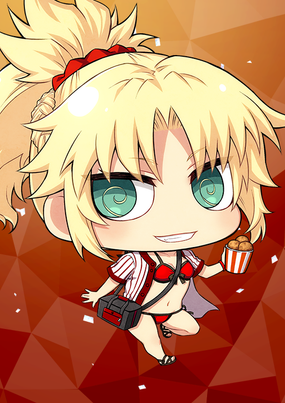 啊,红色的小家伙啊。啊?卑鄙是什么意思啦!你不也有那个叫什么尊严(Pride)还是闪光(Bright)的造型嘛!余也有这套泳装?这不是绳子吗,完全是在搞事啊你这笨蛋!(持有尼禄·克劳狄乌斯)