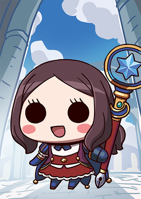 噢噢……这是多么伟大的奇迹,简直就是完成的美……!话说,什么嘛,不就是我的原型嘛。那当然可爱啦!但是……呵呵。毕竟我才是第二版哦!如果能变成成人形态,一定是我更胜一筹啦!(持有莱昂纳多·达·芬奇)