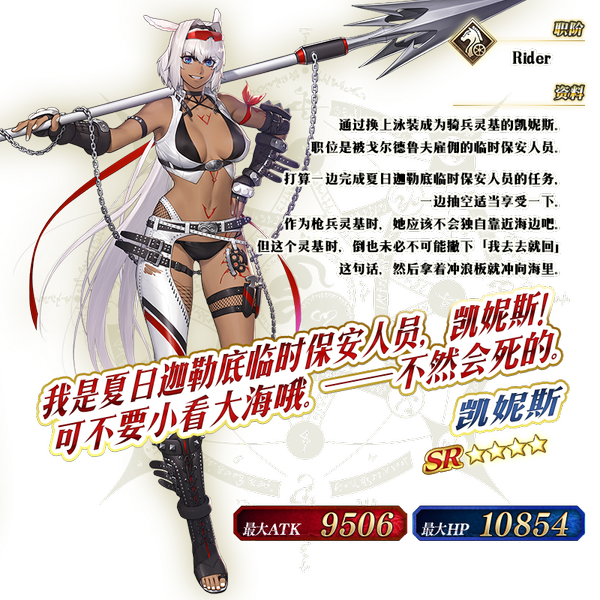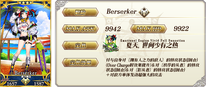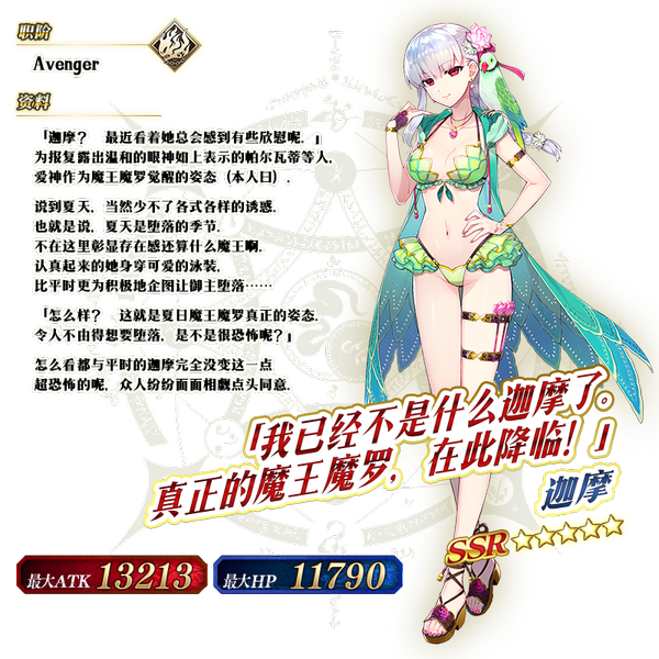 | 关联卡池 | 迦勒底·夏日冒险!推荐召唤1 迦勒底·夏日冒险!男性推荐召唤 迦勒底·夏日冒险!推荐召唤3 |