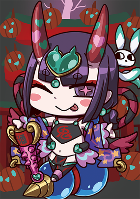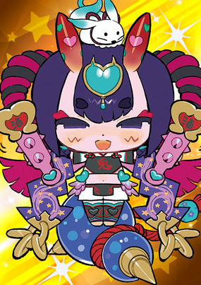 是妾身啦,妾身。没错没错……护法少女……话说茨木。所以说妾身是妾身啦,是酒吞童子。什么?你说尽管非常相似,但妾身和酒吞依然不是同一个……怎么还在说这种话啦。唉,该怎么办啦。(持有茨木童子)