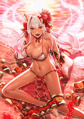 趁那只笨狐狸还在飘飘然,夏日阳光的宝座就由我拿下啦♪……太阳相关人员其实相当多……?不过算了! 只要能超过那只笨狐狸就可以了。阳光~♪(持有玉藻前(Lancer)、玉藻前) | |