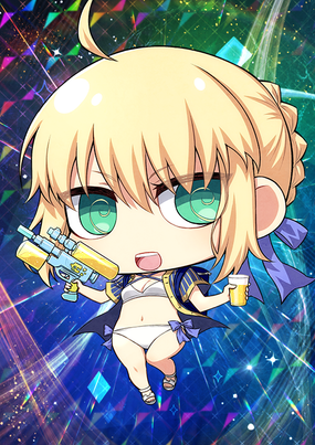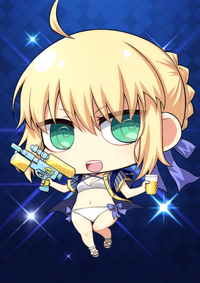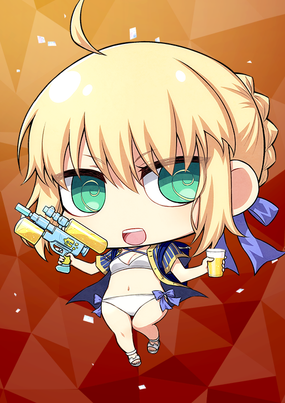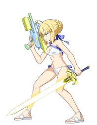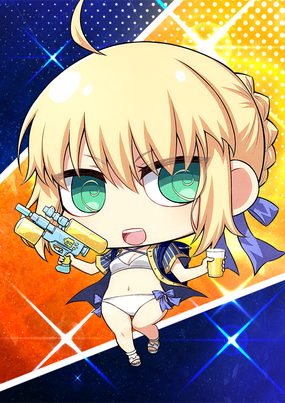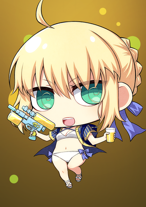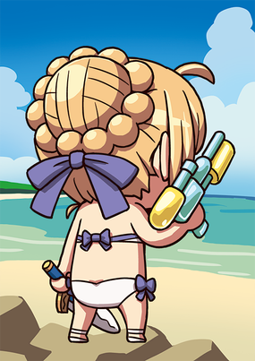 水着を着たアルトリア。水鉄砲をメインウェポンにして普段よりもやたらはしゃいでいる。海辺のミスコンあらしとしてもゆうめい。