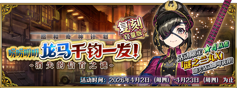 在队伍内编入至少1骑以上『Avenger』『Shielder』等『EXTRA』职阶的从者,完成任意关卡5次