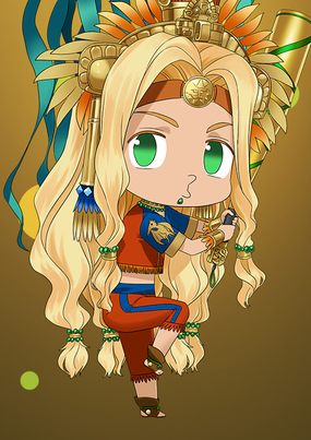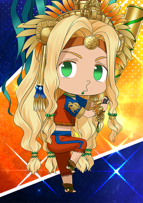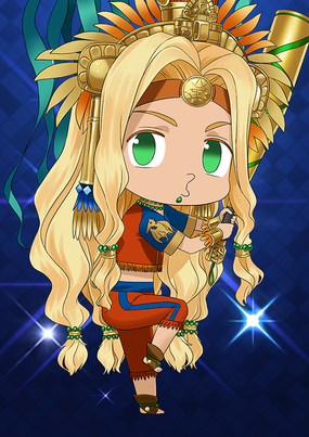 库库尔坎!虽然我有些在意你的发色,但库库尔坎就是库库尔坎!让我们和睦相处吧!哎? 我是姐姐大人? 真的吗? 太棒了,好高兴啊!虽然从积累的时光来说,应该是你比较年长,但不是这个问题吧!多了个可爱的妹妹,我好高兴啊~!(持有库库尔坎)