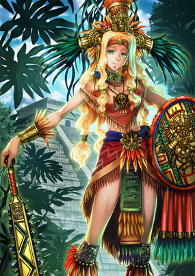 嗨!女神魁札尔·科亚特尔,一听到轮到我出场赶忙跑来啦!哎呀?本以为是裸体神官,结果还真是个可爱的召唤者呢?呵呵,你讨厌高个子的大姐姐吗?
