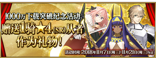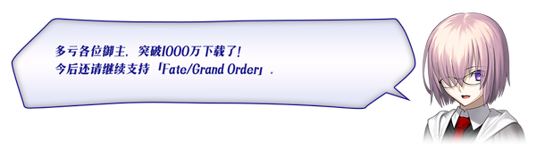 ※「1000万DL纪念券」将在发放时间发放至玩家的礼物盒内,与「特异点F 燃烧污染都市 冬木」的通关情况无关。