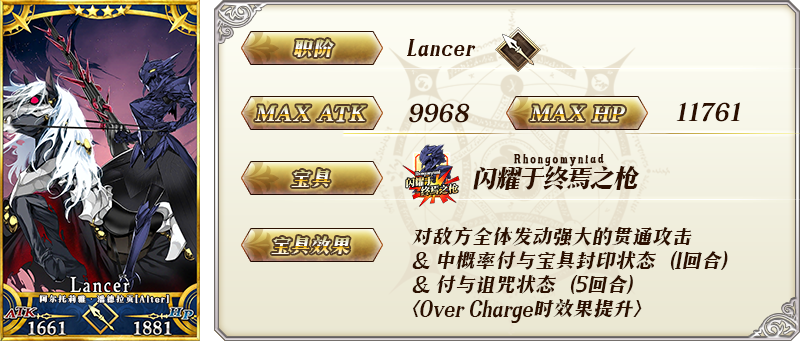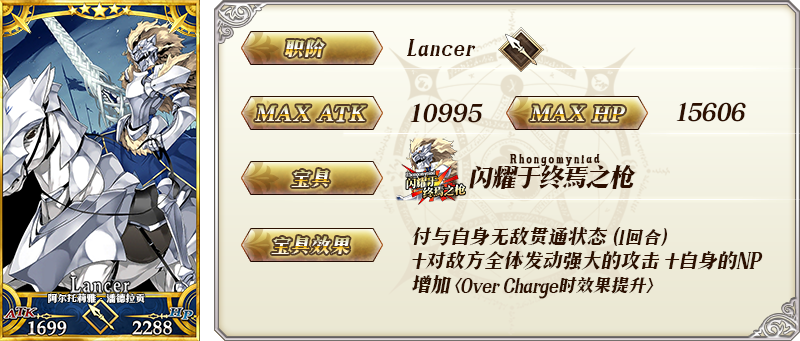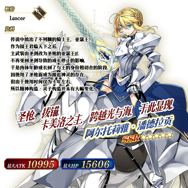 如需了解★5(SSR)阿尔托莉雅·潘德拉贡(Lancer)的宝具动画,您也可以查阅阿尔托莉雅·潘德拉贡(Lancer)/宝具动画页面。