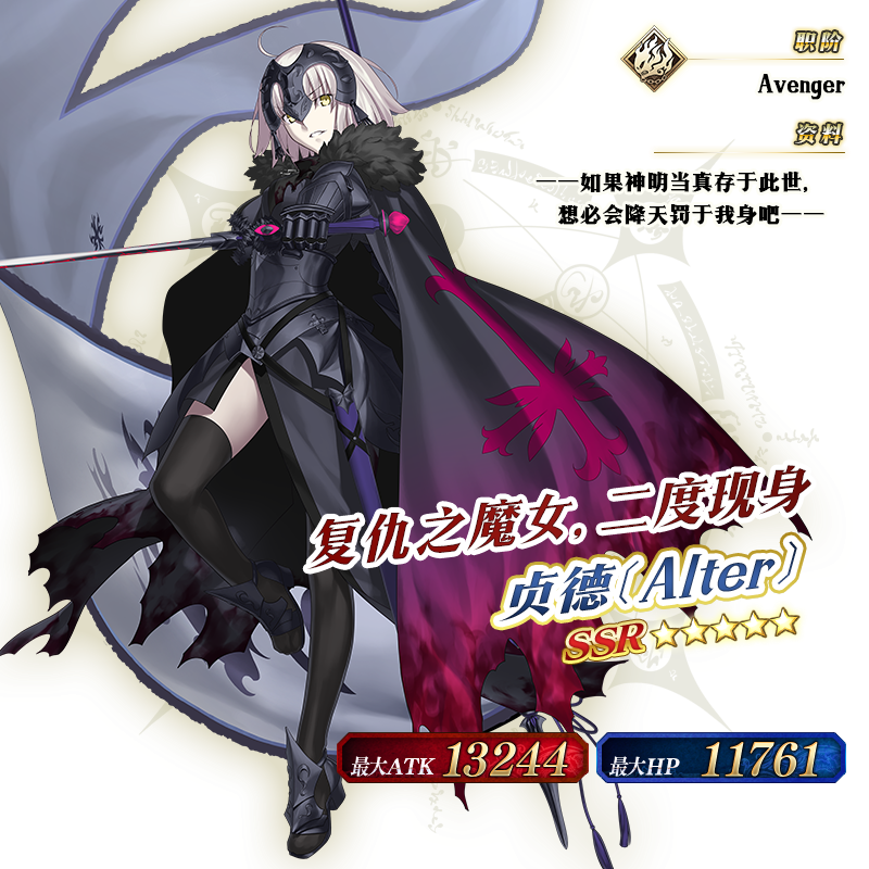 ※以上的「★5(SSR)贞德〔Alter〕(Avenger)」的圣肖像为灵基再临第2阶段。