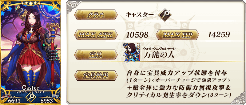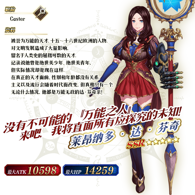 ※以上的「★5(SSR)莱昂纳多·达·芬奇(Caster)」的圣肖像为灵基再临第2阶段。