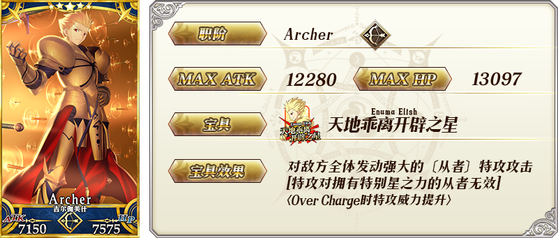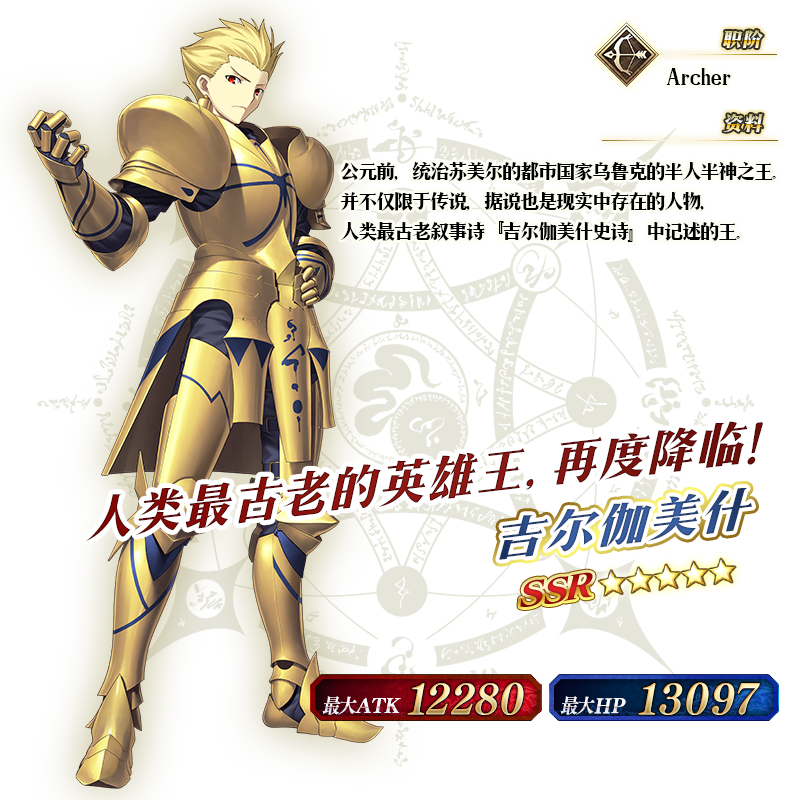 ※以上的「★5(SSR)吉尔伽美什(Archer)」的圣肖像为灵基再临第2阶段。