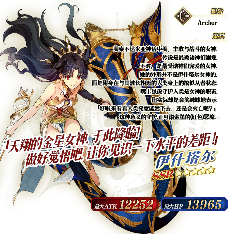 ※以上的「★5(SSR)伊什塔尔(Archer)」的圣肖像为灵基再临第2阶段。