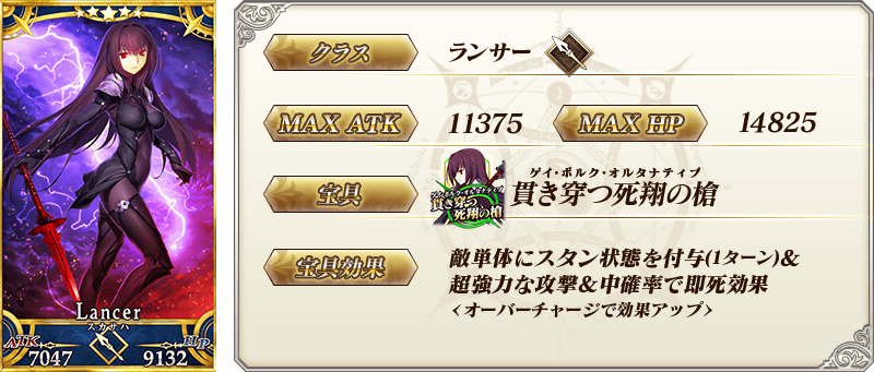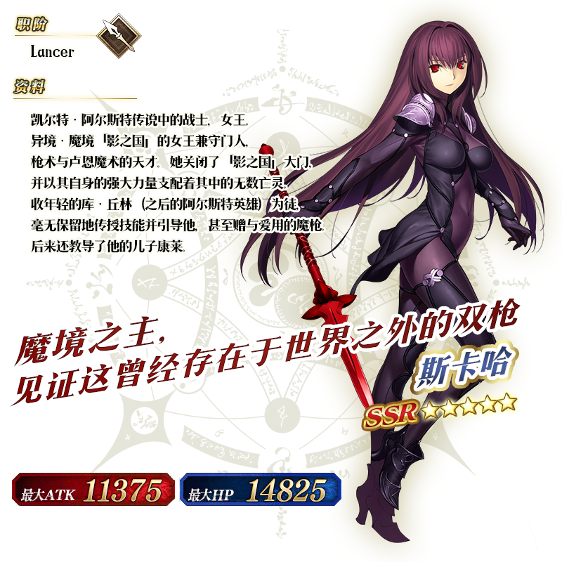 ※以上的「★5(SSR)斯卡哈(Lancer)」的圣肖像为灵基再临第2阶段。