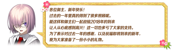 | 关联卡池 | 2018福袋召唤 2018新年推荐召唤 |