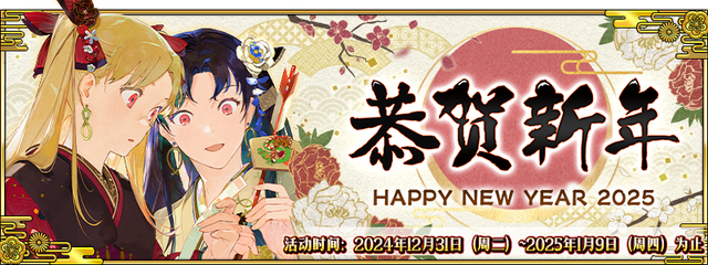 | 关联卡池 | 2025年新年福袋召唤(男女区别×宝具类型·效果区别) 新年2025推荐召唤 |