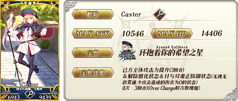 ※以上的「★5(SSR) 阿尔托莉雅·卡斯特」的圣肖像为灵基再临第2阶段。