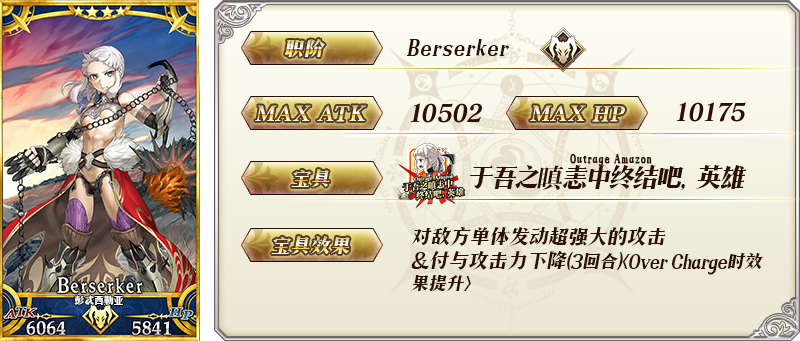 ※以上的「★4(SR) 彭忒西勒亚(黄金国的Berserker)」的圣肖像为灵基再临第2阶段。