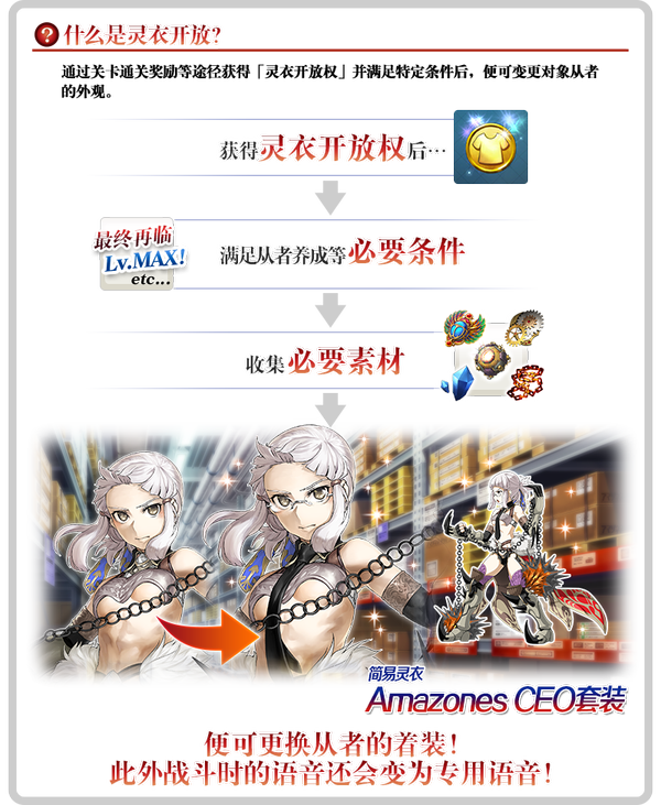 ※「灵衣开放」仅会变更从者的外观,职阶和数值等内容不会发生变化。