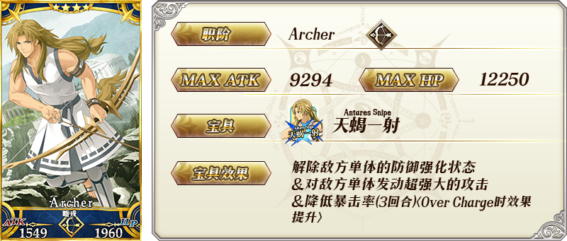 | 自身的Arts指令卡性能提升8%&Buster指令卡性能提升8%&防御力提升3%