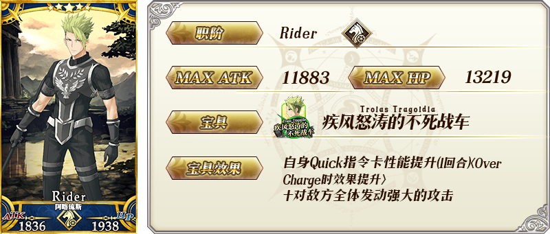 | 自身的Quick指令卡性能提升3%&NP获得量提升5%