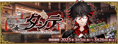 | 关联卡池 | CBC2025 他名为但丁 ~酒店De novo的礼宾员~ 但丁·阿利吉耶里推荐召唤 CBC2025 他名为但丁 ~酒店De novo的礼宾员~ 詹姆斯·莫里亚蒂(Archer)(新宿的Archer)推荐召唤 CBC2025 推荐召唤 |