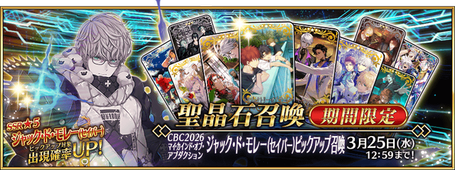 | CBC2026 我喜欢的诱拐 雅克·德·莫莱(Saber)推荐召唤 | |