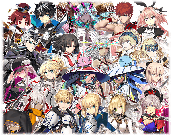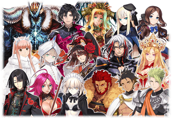 - 七骑士职阶(Saber、Archer、Lancer、Rider、Caster、Assassin、Berserker)各1骑;
