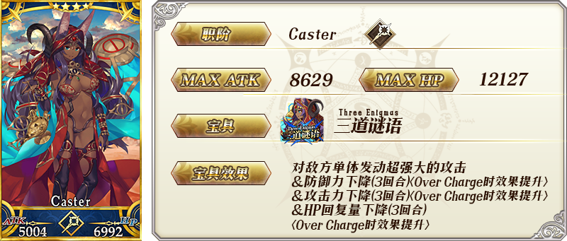 ※以上的「★4(SR)米德拉什的Caster(示巴女王)」的圣肖像为灵基再临第2阶段。