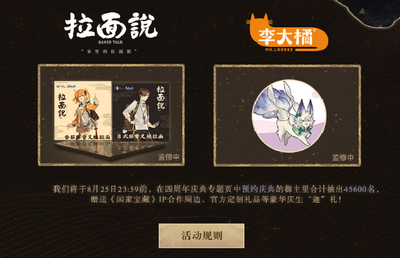 为Bilibili官方为庆祝《FGO》国服2周年,而在2018年9月25日至2018年9月27日发放了200000份以阿尔托莉雅为主题的拉面说牌拉面(100000个兑换码,每个兑换码对应两份拉面,每个账号只可领取一次),由于该次发放数量较多,大多数玩家都领到了拉面。在9月29日,官方追加发放了50000份拉面,合计共发放250000份拉面(125000个兑换码)。