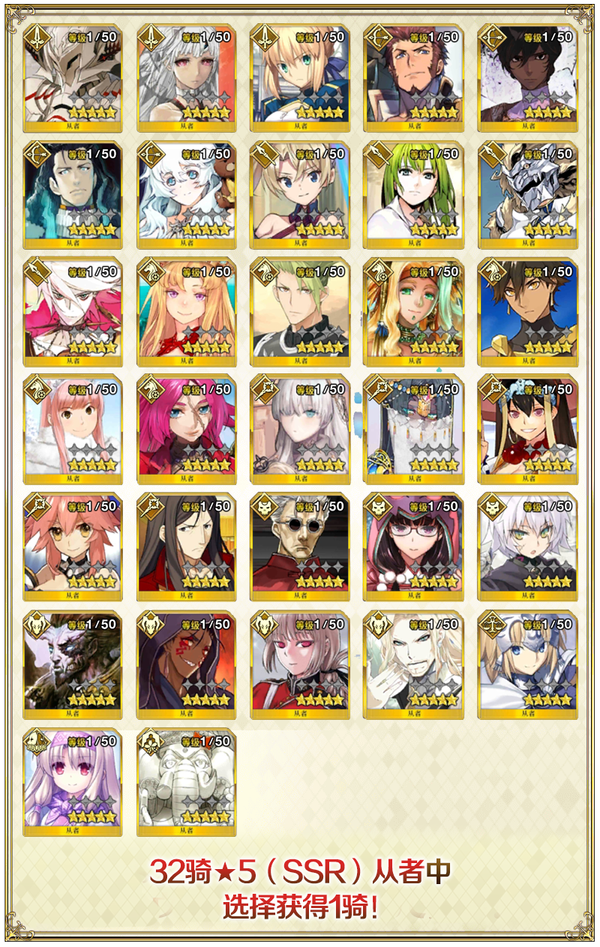 赠送1骑★5(SSR)从者