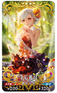 | 自身的Quick指令卡性能提升8%&Arts指令卡性能提升8%&以NP已达50%的状态开始战斗 自身的Quick指令卡性能提升10%&Arts指令卡性能提升10%&以NP已达60%的状态开始战斗[最大解放] | |||