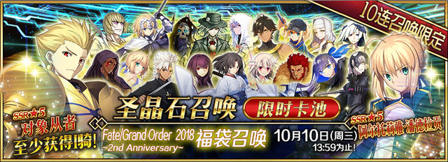 「Fate/Grand Order 2018 ~2nd Anniversary~福袋召唤」卡池限时开启!