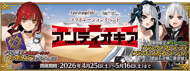| Fate/strange Fake × Fate/Grand Orderコラボレーションイベント「剽滅十字前線 アンティオキア」 | |