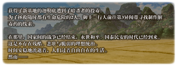请享受由剧情作者虚渊玄(Nitroplus)带来的以第3异闻带为舞台的「第2部 第3章」的故事吧!