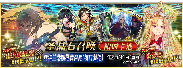 为了纪念第2部 第5章「Lostbelt No.5 神代巨神海洋 亚特兰蒂斯 击坠神明之日」开幕,限时卡池「亚特兰蒂斯推荐召唤(每日替换)」开启!