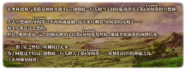 | Lostbelt No.6 妖精圆桌领域 阿瓦隆·勒·菲 星辰诞生之刻(前篇) | |