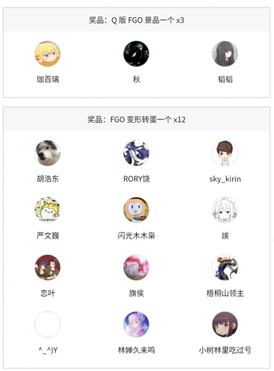 再次感谢 随时可以扭蛋的App-蛋酱 的大力支持并提供奖品,更多FGO周边在线可扭哦