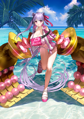 うわあああ、ねんがんのサマーウェアですぅ~~!嬉しすぎて死んじゃう~~~! みんなありがとーーーう!あ。すすすみません、召喚のご挨拶、ですよね!わたしは愛憎のアルターエゴ、パッションリップ。新しい霊基になれてもエゴのカタチは変わらないし、両手も大きいままだけど……わたしの個性が長所と思ってもらえるよう、がんばります!そしてメルトにだけは負けません!大きいことはいいことだ、だもんね!