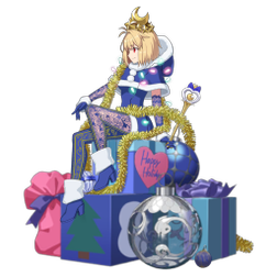 | 牵绊 Lv.2 | 赤いサンタコートも考えたんだけど、ここはあえて青色にしてみました! 上品でいいでしょう? サンタになっても王族ですので、ロイヤルさは意識しないとね! |