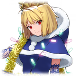 赤いサンタコートも考えたんだけど、ここはあえて青色にしてみました! 上品でいいでしょう? サンタになっても王族ですので、ロイヤルさは意識しないとね! | |