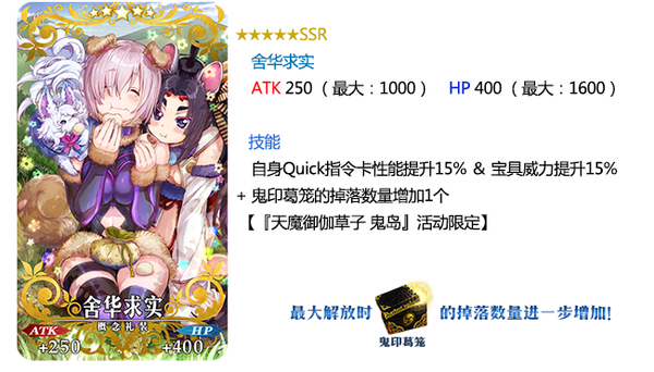 (国服开放此卡池时,★5(SSR)限定概念礼装“苦味甜蜜”尚未实装,暂未开启该活动)